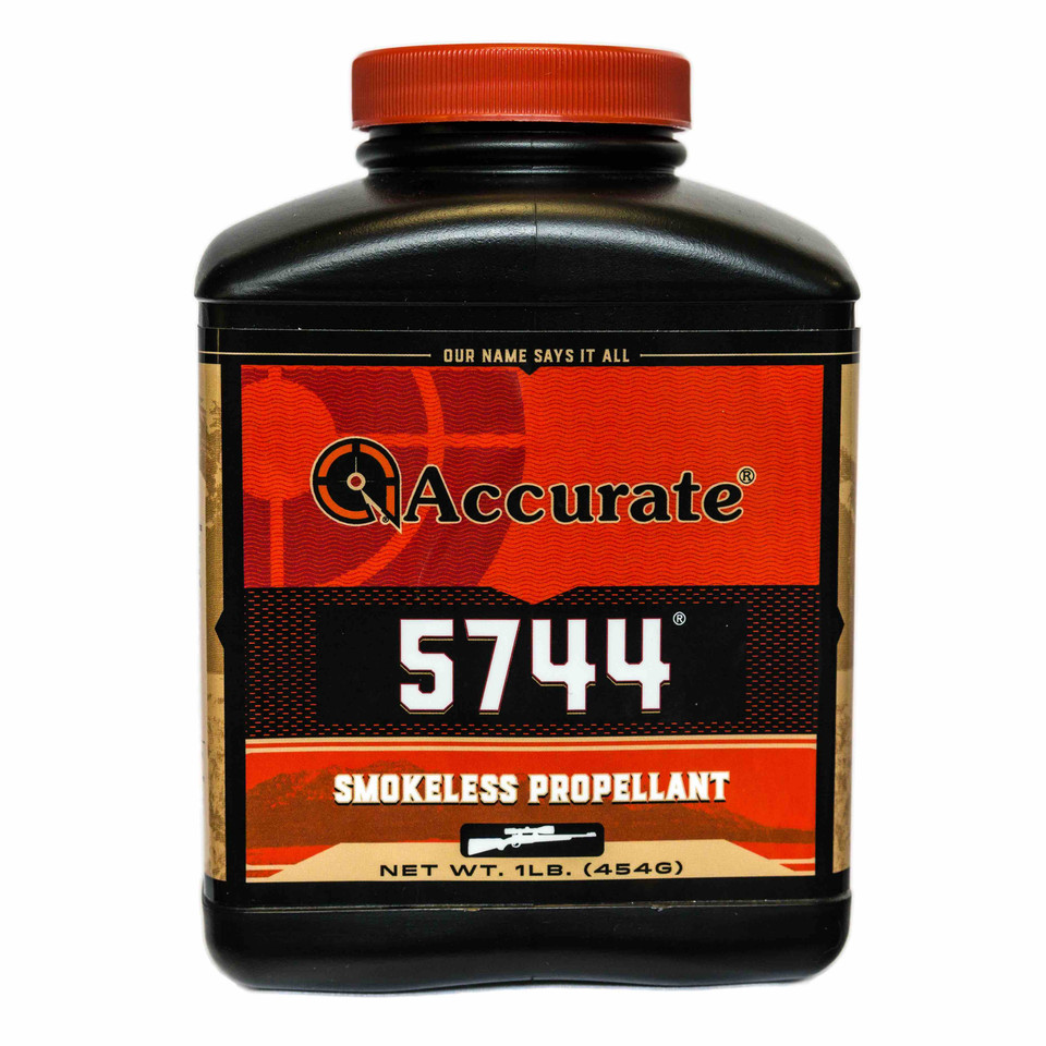 Accurate 5744 is an extremely fast burning, double-base, extruded powder. This unique powder can be used in a wide range of rifle calibers and magnum handguns. 5744 is characterized by excellent ignition and consistency over a very wide performance range. Low bulky density and superior ignition characteristics make 5744an excellent choice for reduced loads in many rifle calibers and in large capacity black powder cartridges such as the 45-70 through 45-120 and 50-90 through 50-120.