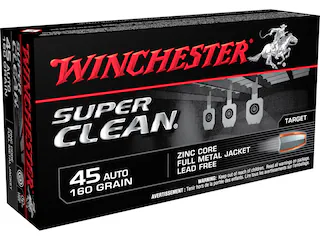 Winchester Super Clean ammunition is completely lead free, utilizing a lead free primer and a full metal jacket bullet with a zinc core that delivers superior accuracy and reliable performance. Designed for training on indoor and outdoor ranges. Ideal for ranges that don’t allow lead. This ammunition is new production, non-corrosive, in boxer-primed, reloadable brass cases.